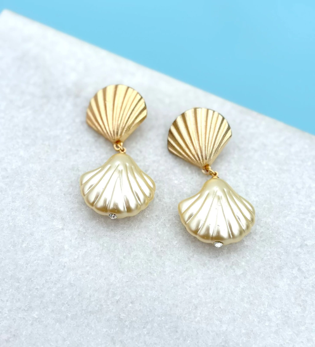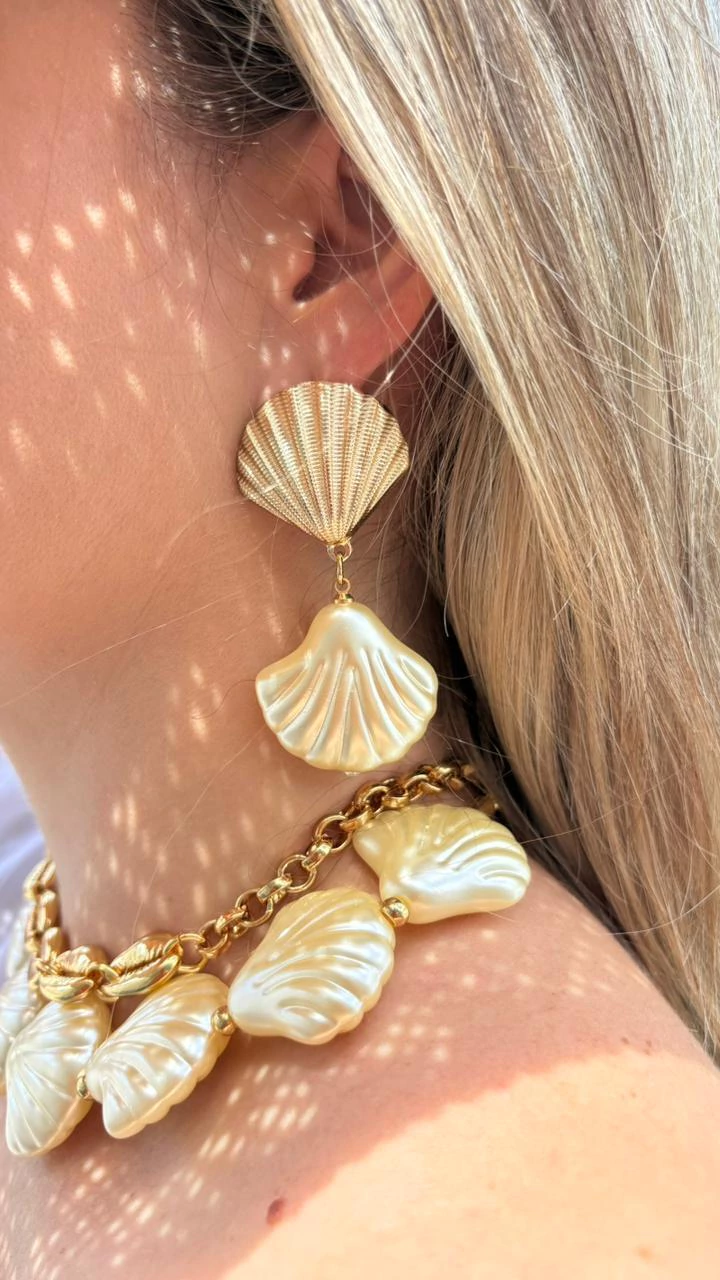 Brinco Mare – Elegância em forma de concha e pérola~- Cód 1580
